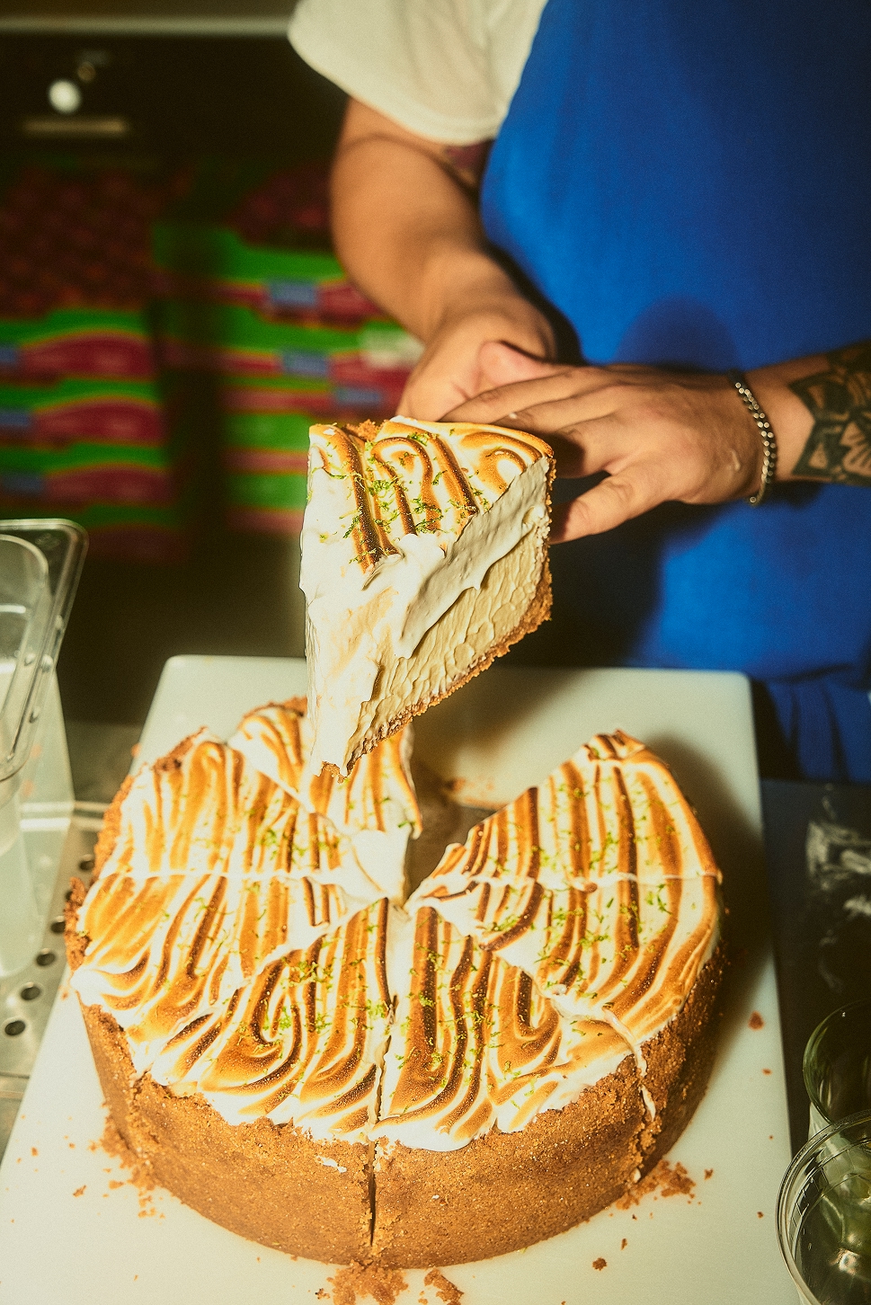 Biscuits graham, beurre, crème sûre, lait condensé, blanc d'œufs, lime